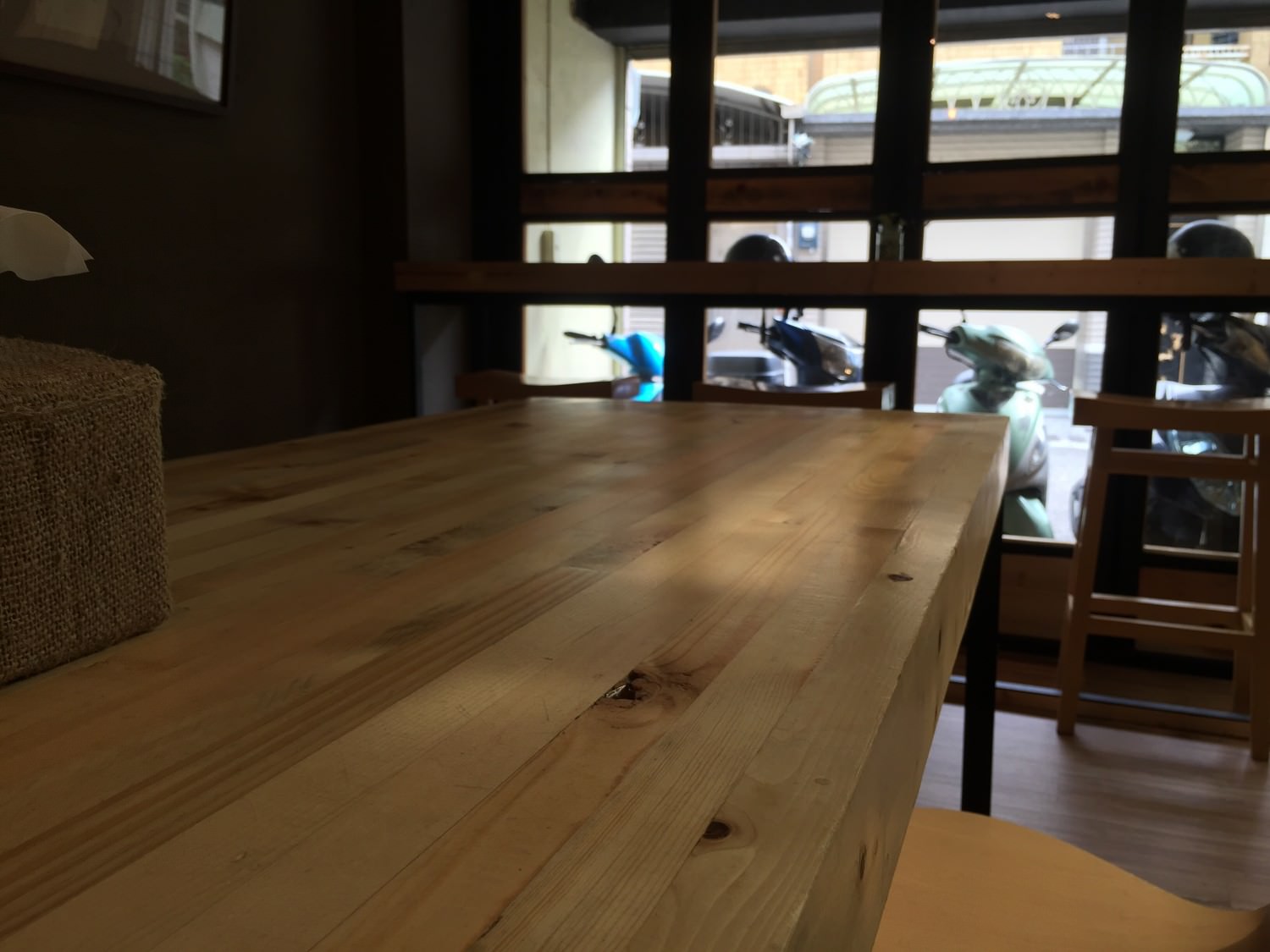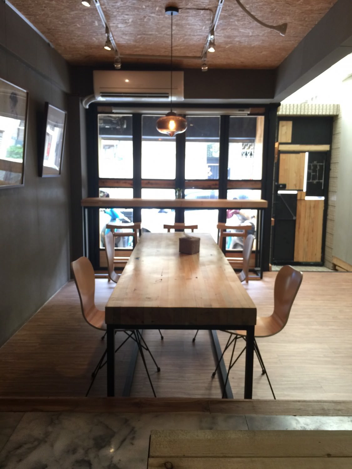 安內咖啡裡面的空間其實我覺得算蠻大的,對於巷子內的咖啡而言.除了靠窗的三個高腳座位之外,中間還有一個很大的實木桌子,目測應該可以坐四到六個人左右.