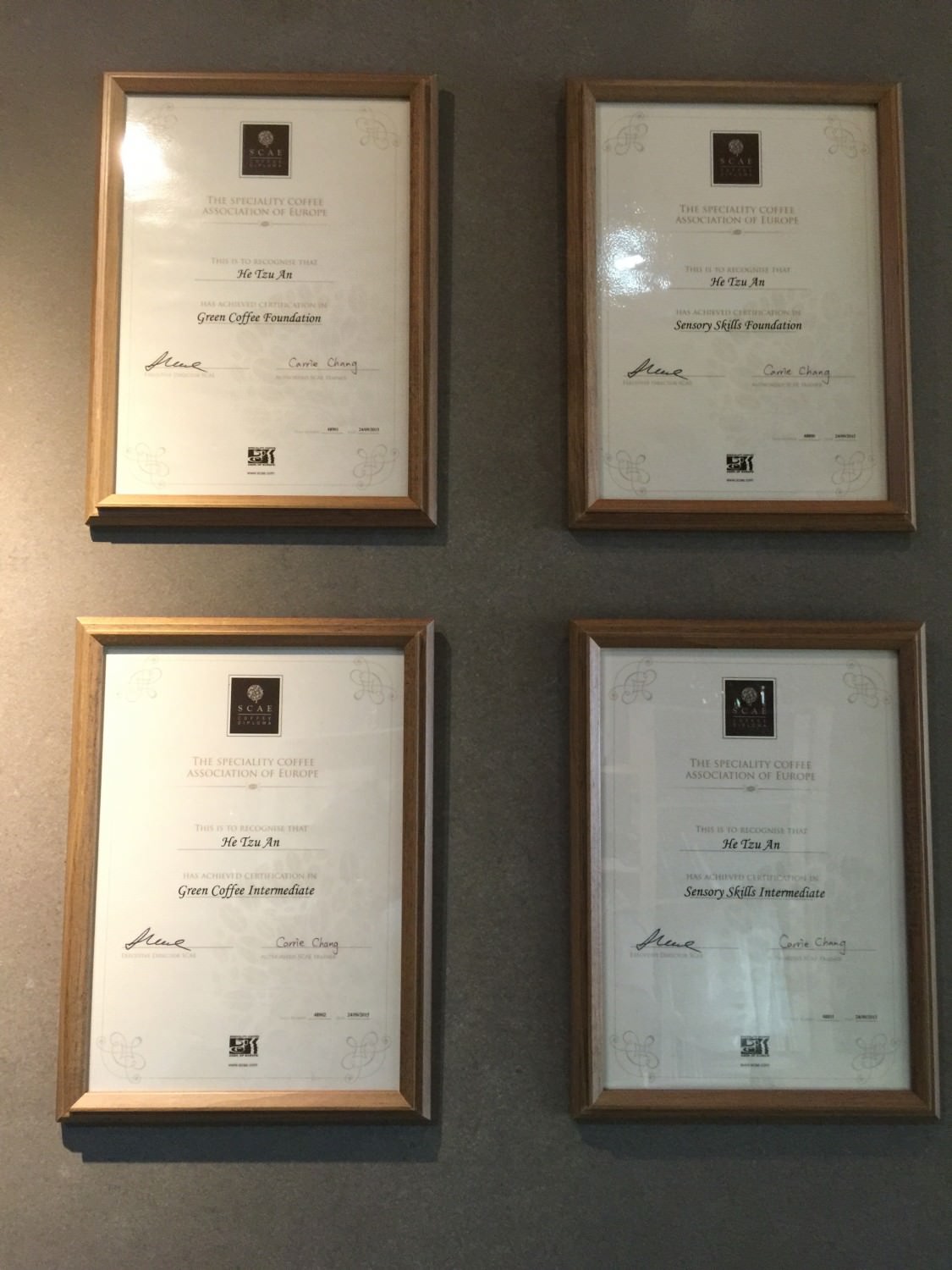 牆上的一些證件也證明了他們的不凡.(說真的我看不懂…因為自己畢竟是咖啡的外行人,或許有朋友可以為我解惑呢?)