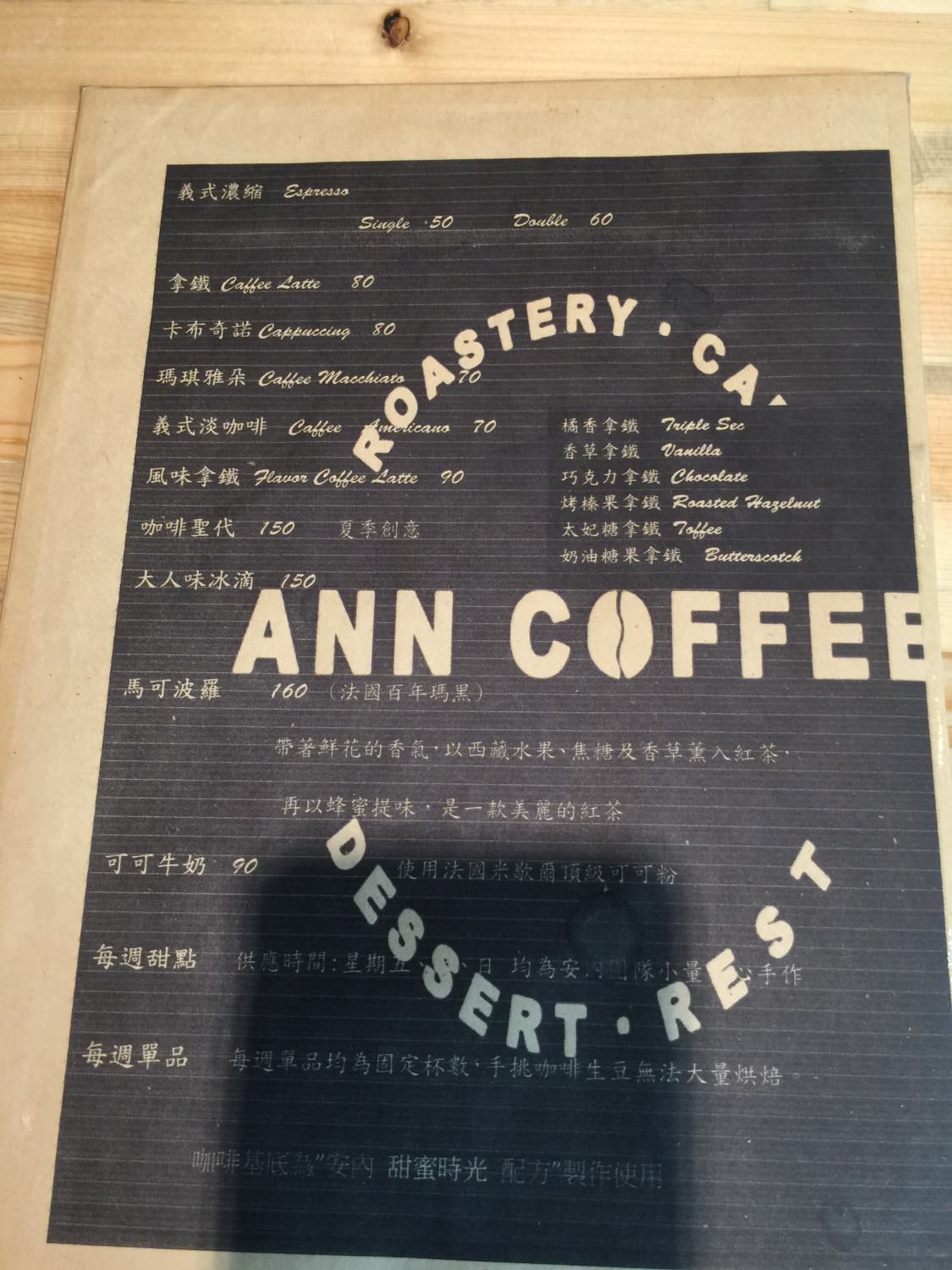 來看看安內所提供的咖啡吧.這邊是基本款的部分.包含有常見的義式濃縮、拿鐵、卡布奇諾、瑪琪雅朵…等等。