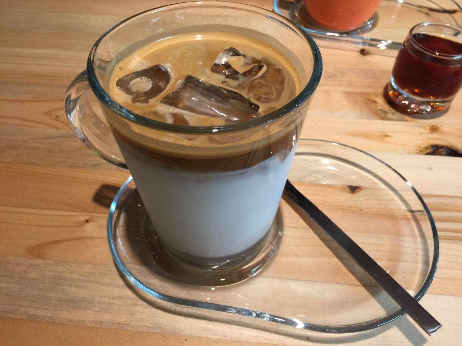 等了沒多久,我們的咖啡上桌了.這是朋友說點的單品,他同樣的也幫我們準備了一杯小杯,讓我們同行的人都可以一齊嚐一下.