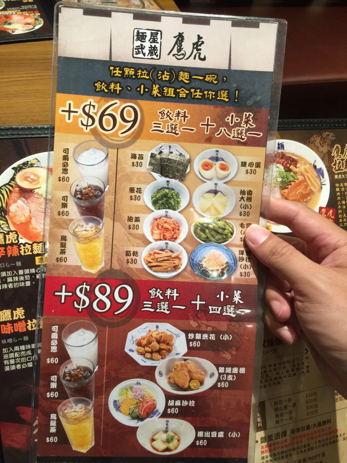 首先來看一下麵屋武藏-鷹虎的菜單吧!