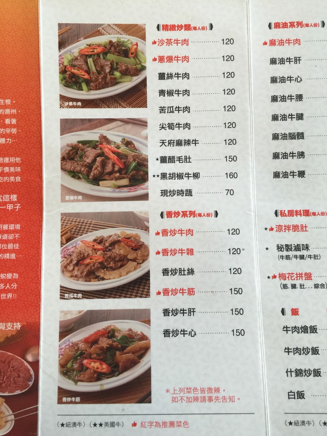 他比較特別的是,一樓的部分所賣的就是一些牛肉的熱炒跟料理類,但是2樓呢賣的是沙茶火鍋.所以他的配置方式有點類似台南的福樓,就是同一棟建築物的各層樓提供不同樣式的料理,要來這邊的饕客們可以選擇自己想要吃的餐點,每次都可以吃到不一樣的東西,就是所謂的 one stop shopping的概念,郭台銘的精神有學到,不錯!
