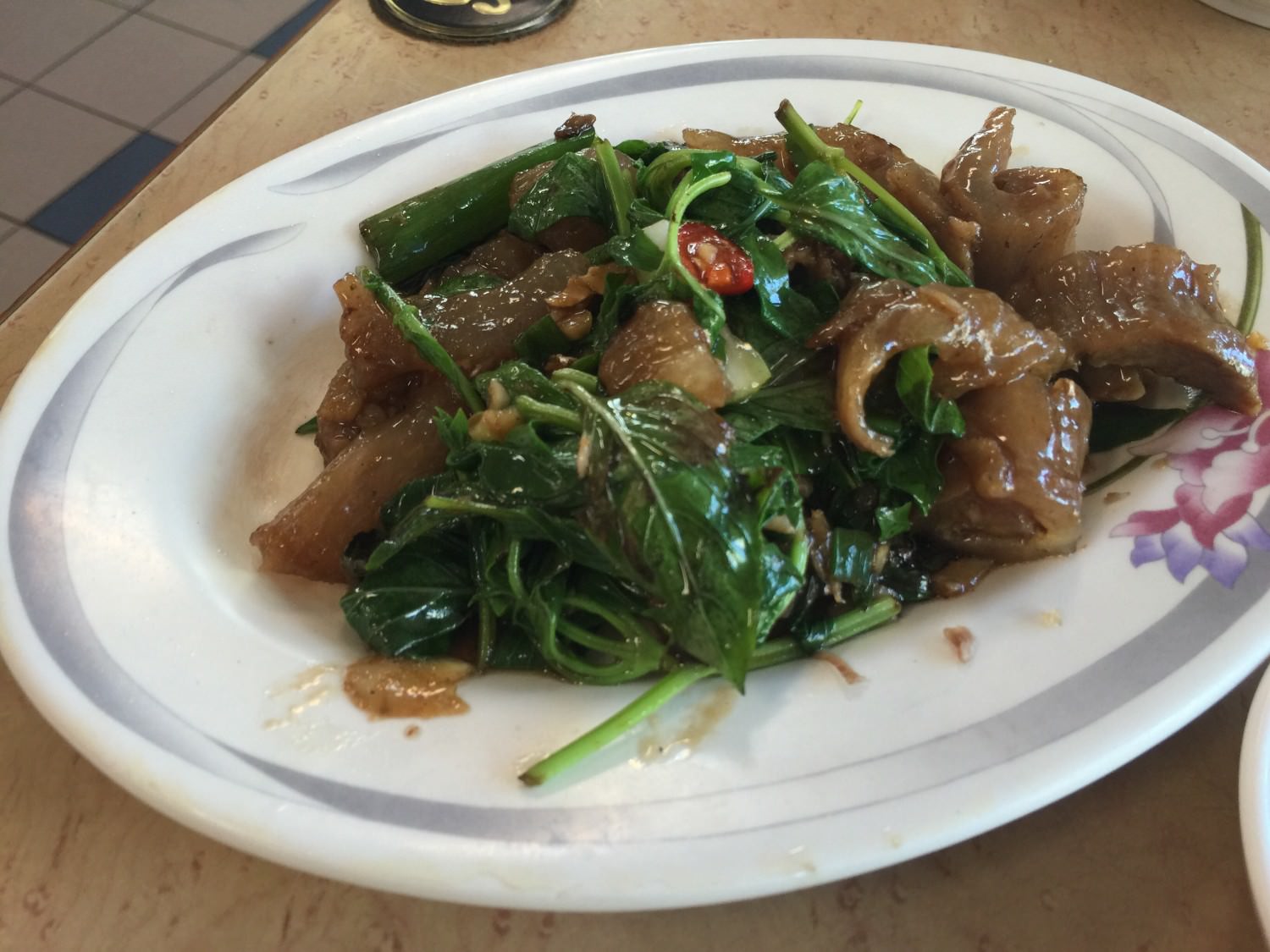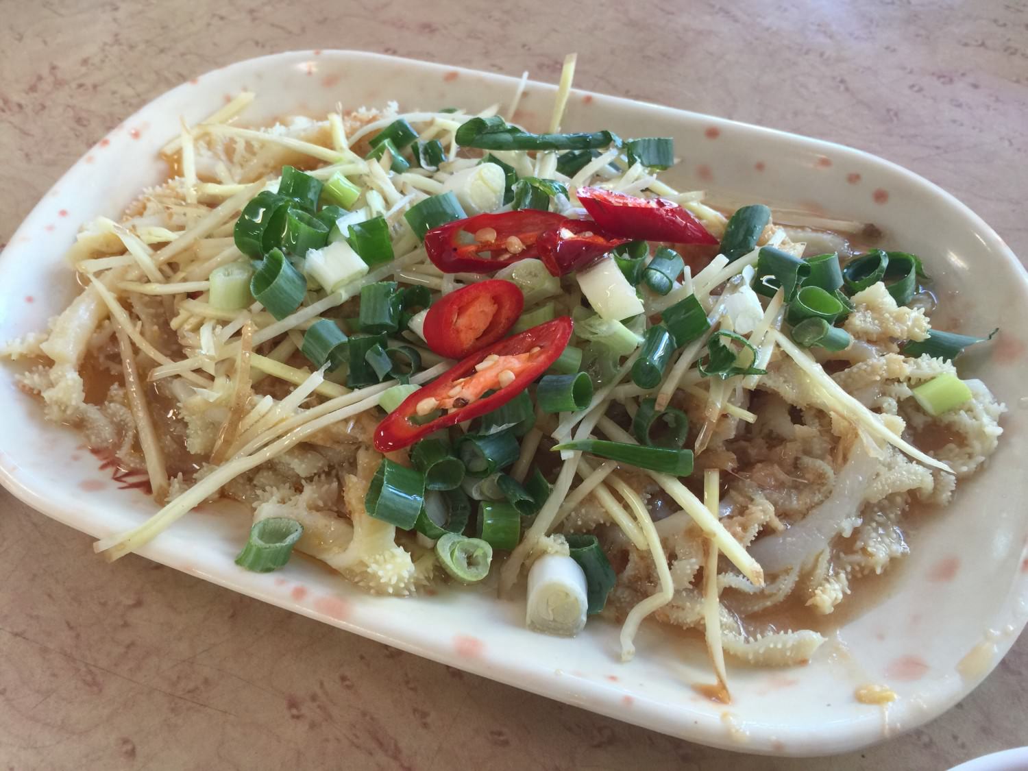 這道應該是香炒牛筋,也是很好吃,牛筋有彈性但是卻又軟爛,奇妙的平衡。
