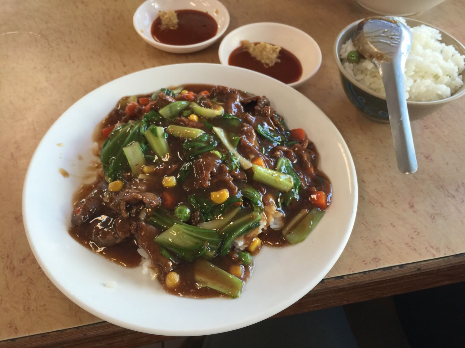 因為艾瑪很餓,一個人就點了一個牛肉燴飯(她自己嗑完了⋯),相當相當好吃:牛肉新鮮(當地溫體牛)嫩不在話下,這個芡汁的調味好搭飯,味道雖然重但是不會太鹹,基本上一個控制不好,這一大盤牛肉燴飯可能兩三分鐘內就可以解決了⋯?