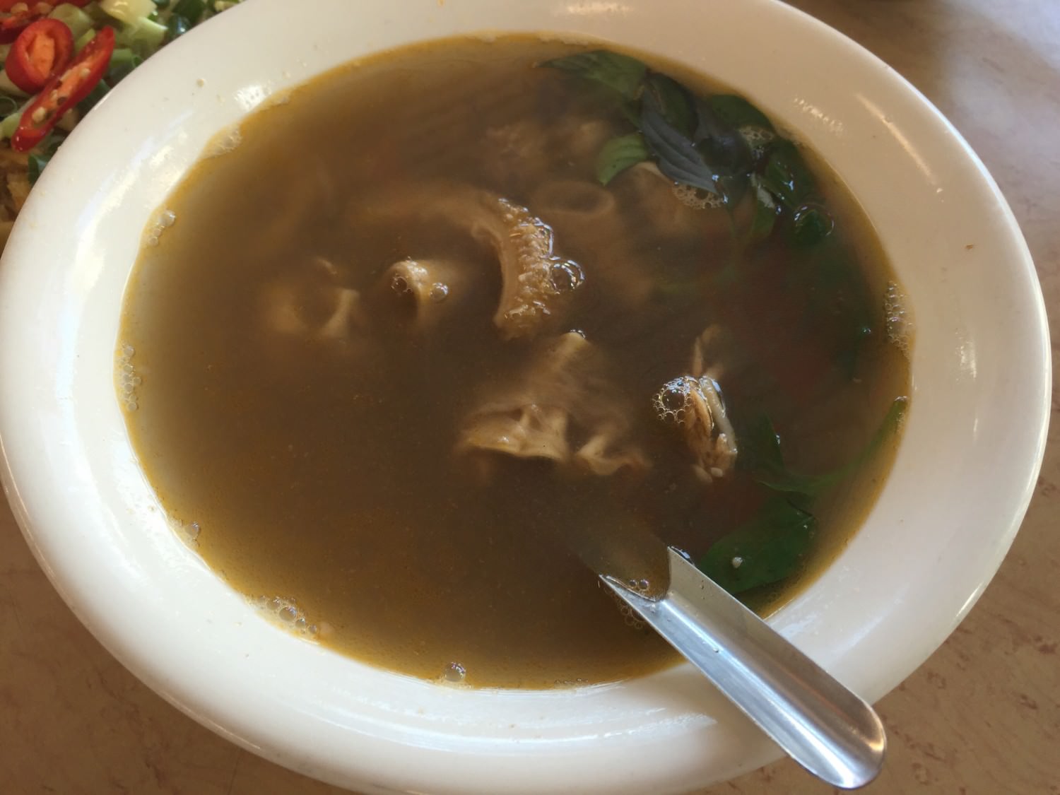 這是招牌牛雜湯。比較像是紅燒的湯頭,喝起來濃而不膩。相對於台南的紅燒牛肉湯都是偏四川的口味,牛大福的牛肉湯比較清淡一些,但是味道仍然非常濃郁,我個人反而比較喜歡牛大福的牛肉湯咧!