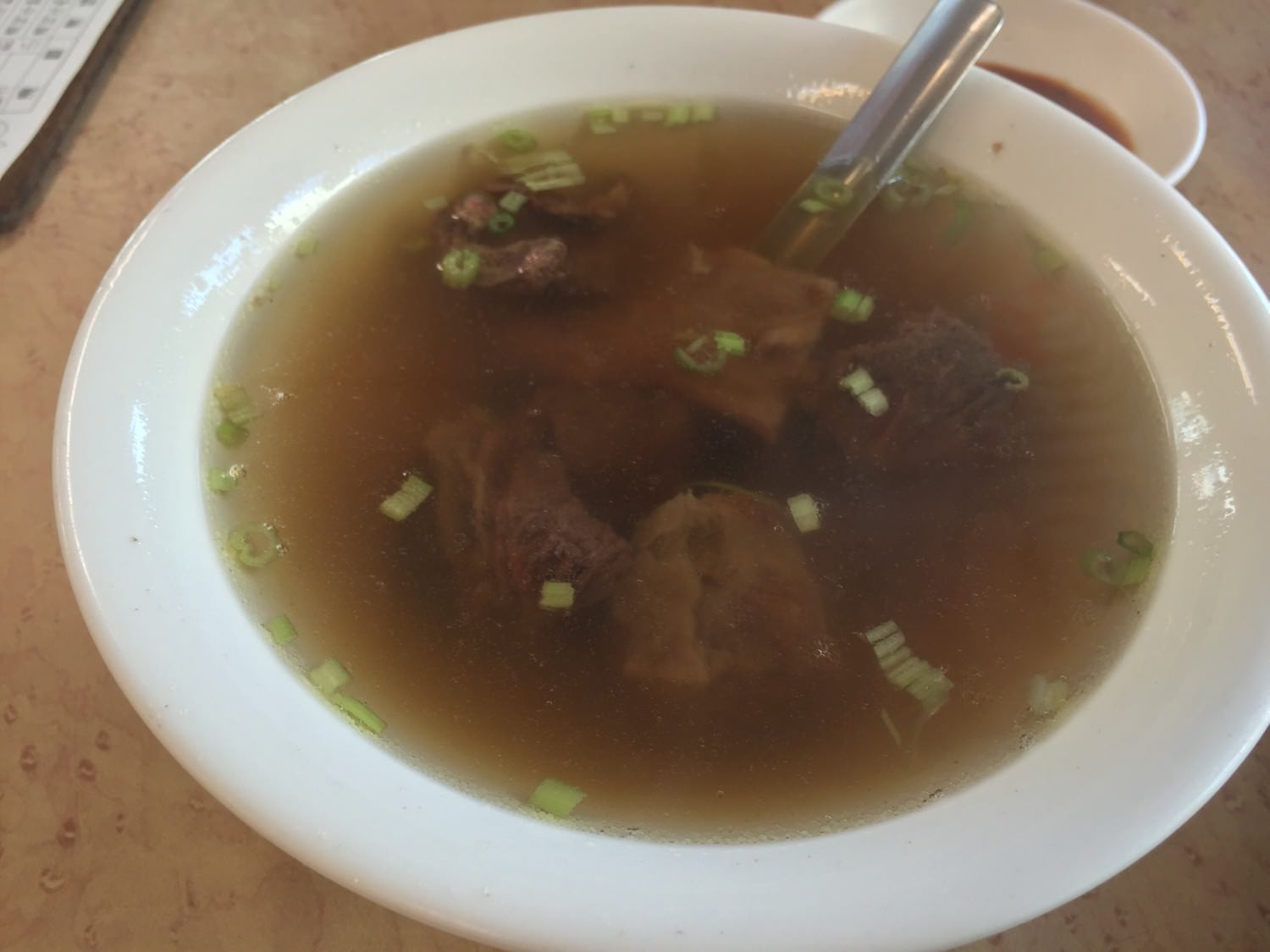這是清炖牛肉湯。喝起來相對較淡,但是味道也十足喔,絕對不能因為它的名字小看它。