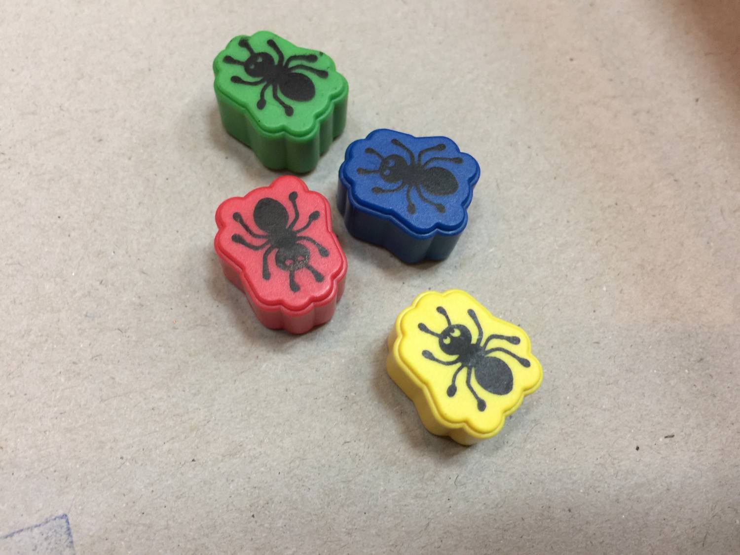 首先,玩家個選擇一種顏色的螞蟻,遊戲目標就是要讓所有的螞蟻都走到終點。這些螞蟻身體裡面也是帶著磁鐵的。(這種利用磁鐵原理的桌遊相當多,像是我們之前介紹的魔法高塔、瓢蟲彩妝宴就是例子)