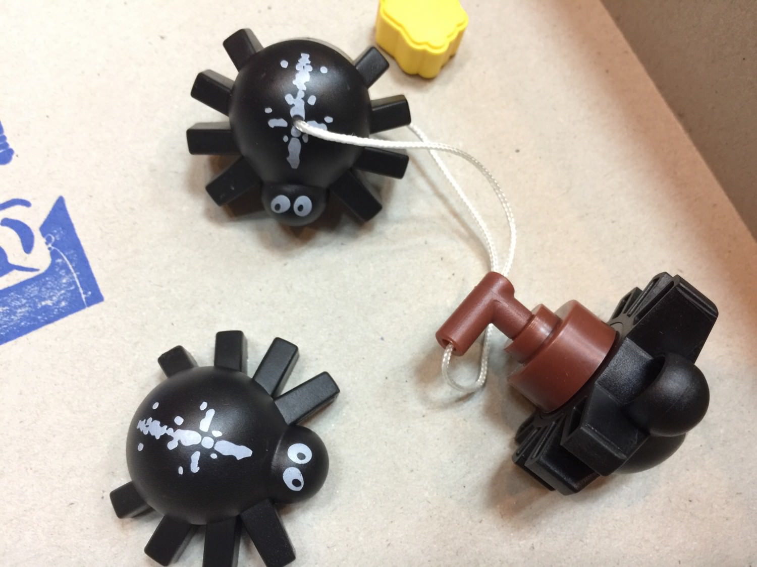 在上層的圖版表面,配置著兩隻蜘蛛哥哥,在圖版的下表面,則是另外一隻帶有兩個磁鐵的蜘蛛妹妹.因為妹妹比較輕,所以負責下面被拉的腳色?