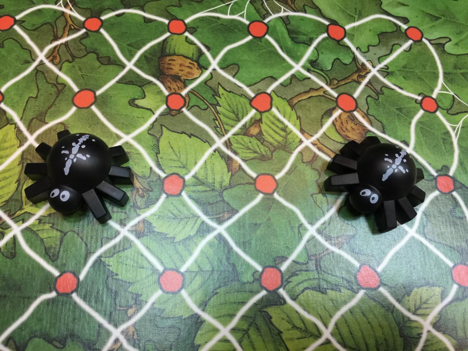 若是綠色骰子擲出蜘蛛,則可以移動上層的兩個蜘蛛哥哥。黑色骰子上面的點數,則是蜘蛛哥哥可以移動的步數。因為是兩隻蜘蛛哥哥,所以出來的步數可以由玩家任意決定如何分配,例如: 白色點數為四點,則可以是 (4, 0), (2, 2), (1, 3) 的組合,也不需要照一定的順序來移動。經過交叉點的時候,可以自由轉彎。被吸附起來的螞蟻,則會回到遊戲起點。
