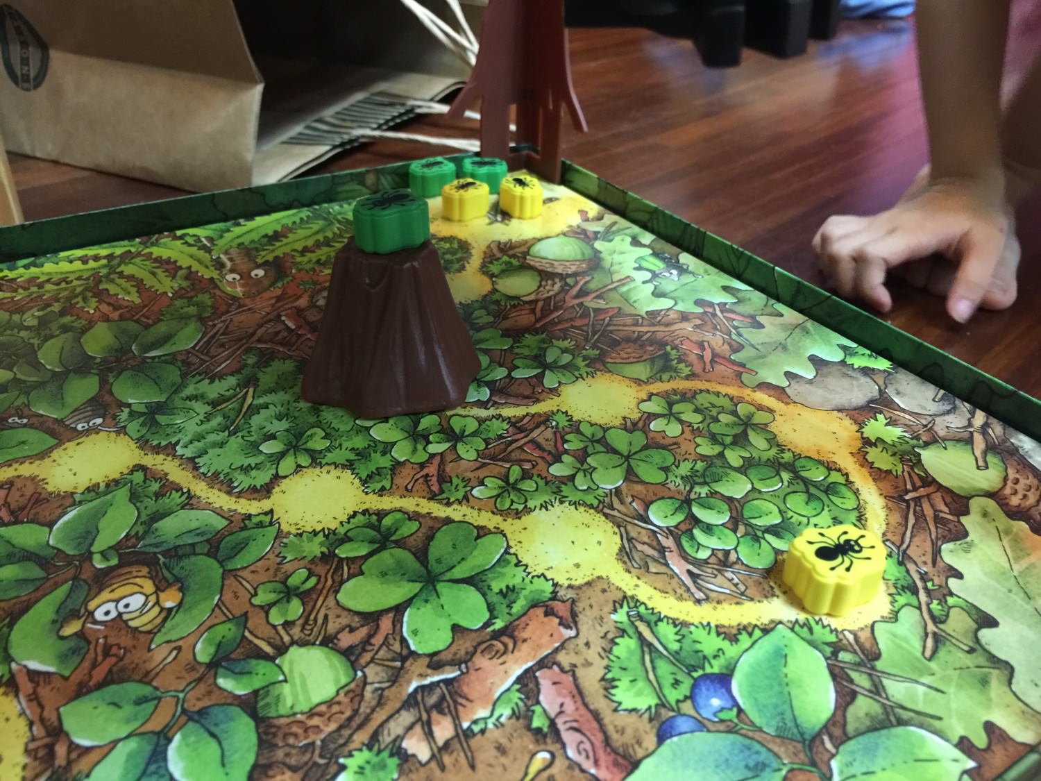 若是擲出樹葉,那麼就可以移動樹墩,並且還可以再移動一隻屬於你的螞蟻或是蜘蛛。
