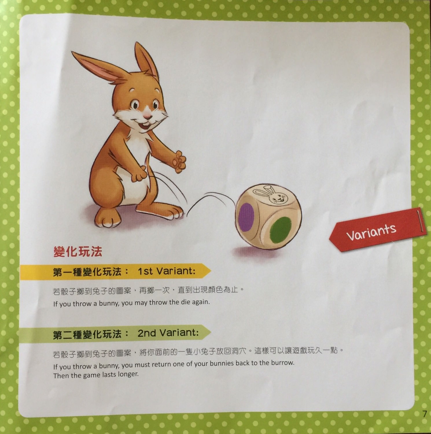 因為遊戲規則太簡單,所以有變化版的遊戲規則也是合理的,蹦蹦兔的遊戲說明書中有介紹兩種變化型的遊戲規則。這部分也可以讓父母們發揮創意,自己制定適合你們親子的遊戲規則喔。