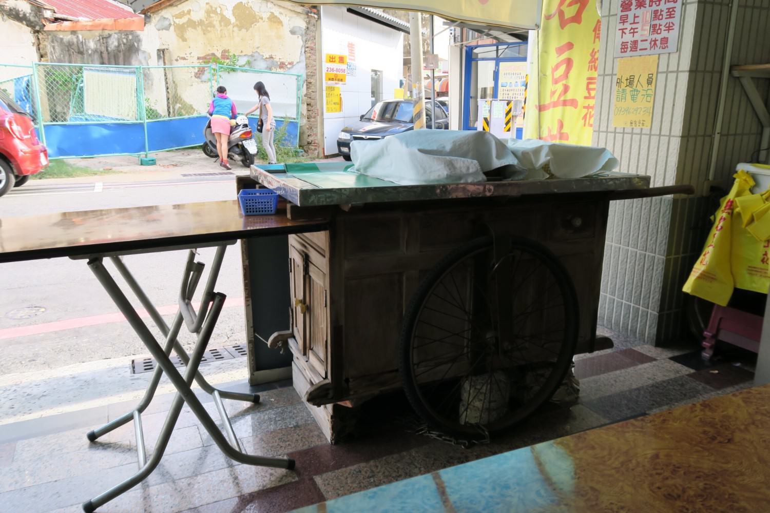 實際豆花是真的裝在這台車子裡面的。這種推車相對於我在汕頭豆花門口看到的那一台,顯然大上許多,是豪華版的….由此可見應該無名豆花的生意比較好。我想這也是事實,目前台南豆花店,除了安平同記豆花跟他隔壁的黑豆豆花之外,有開比較多分店的應該是這家無名豆花了。我們在下面也會介紹武廟門口的那家。