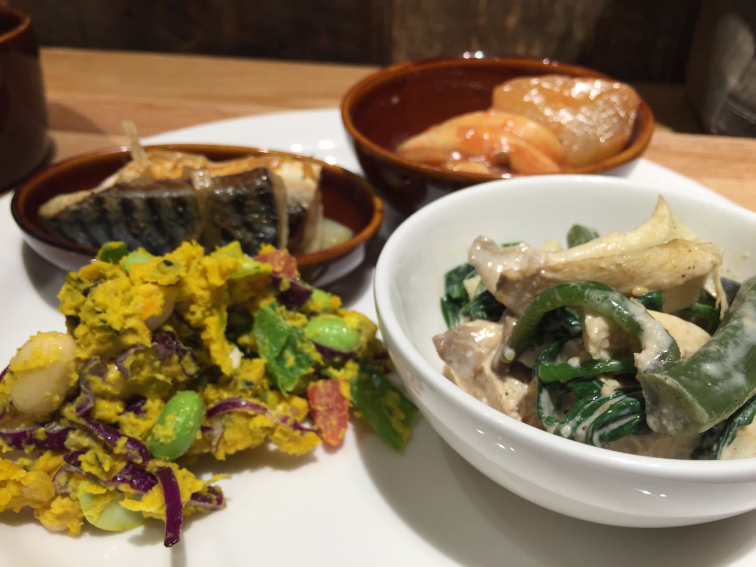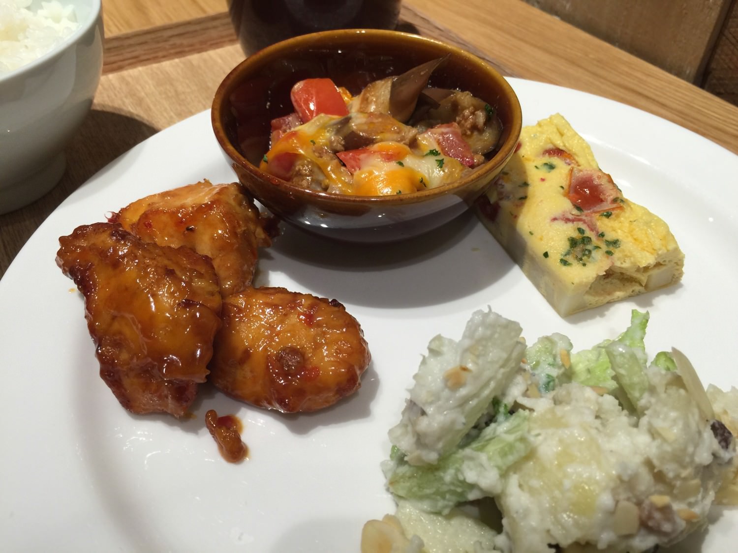 - 4品套餐 270 元,可以選擇 兩份熱食加兩份冷食,另外附白飯跟味增湯。